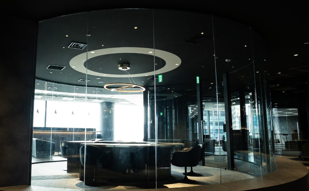 洗練された内装デザインと広々としたフロア構成が特徴で、近未来的な企業・ナノマーレの雰囲気にぴったりのロケーションとなっています。