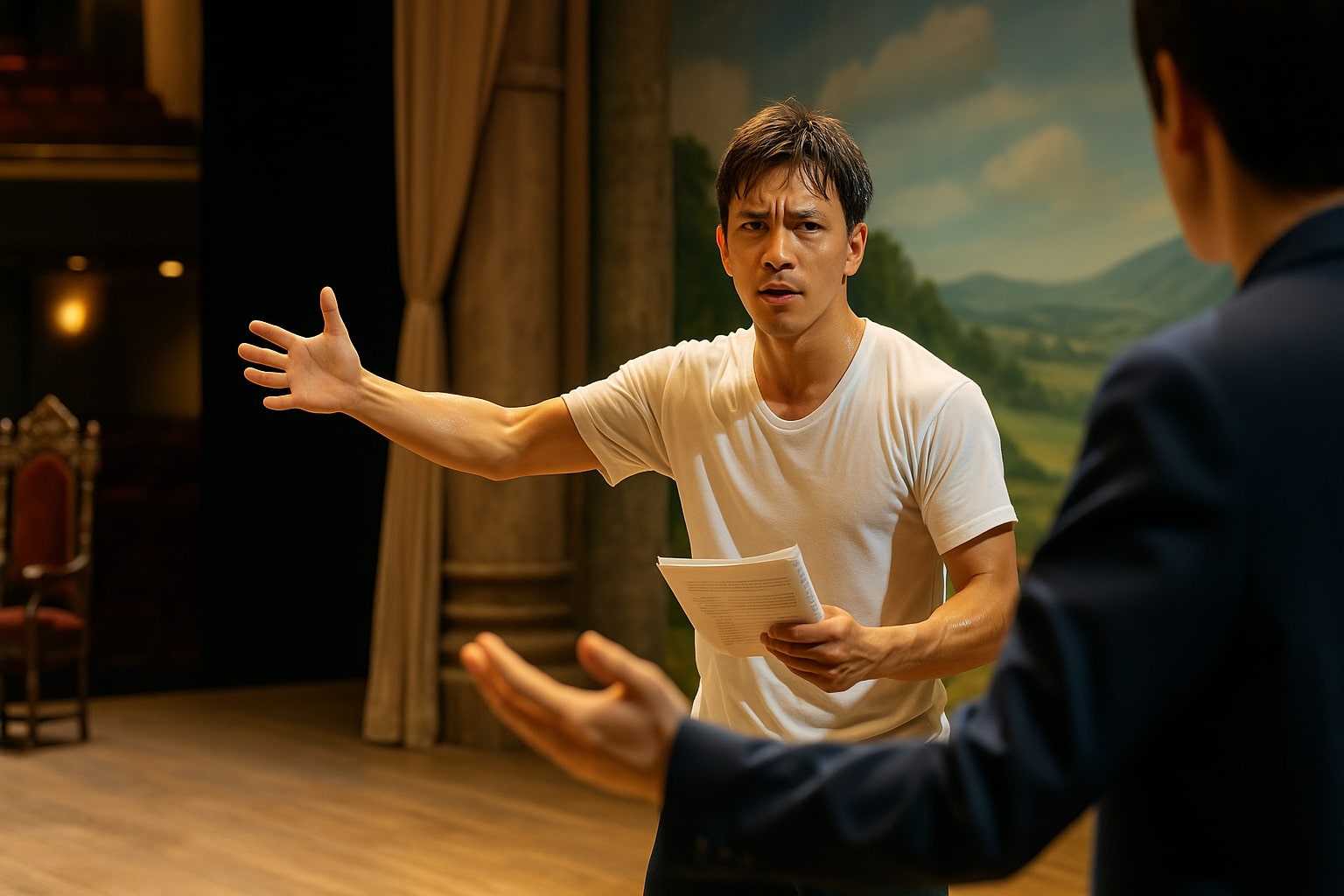 他の劇団員が去り、信頼関係や金銭面での問題が噴出する中、一人きりで汗だくになりながら台詞を繰り返すトニーの姿は、混乱を超えて舞台を成功させたいという真摯な意志を感じさせます。