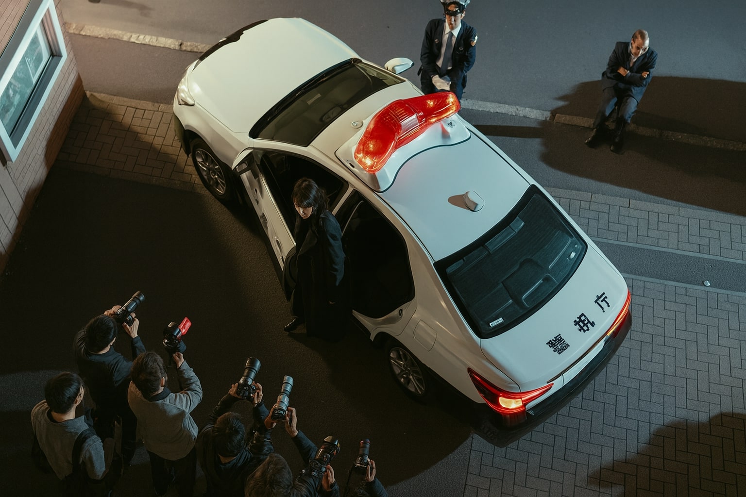 薫は二人の姿を見つけ、最後のまなざしを交わした後、静かにパトカーへと乗り込んでいきました。