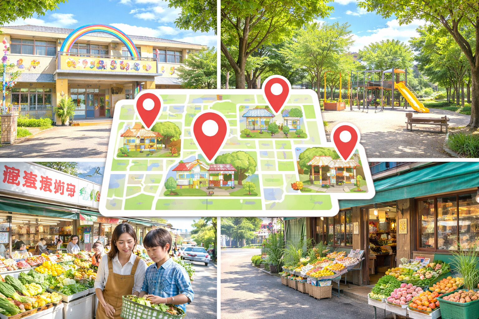 よしずみ保育園・颯太が遊ぶ公園・未来が買い物をするスーパーなど、未来と颯太が訪れた実在のスポットを、登場話数・シーン内容・施設情報・住所とともに網羅しています。