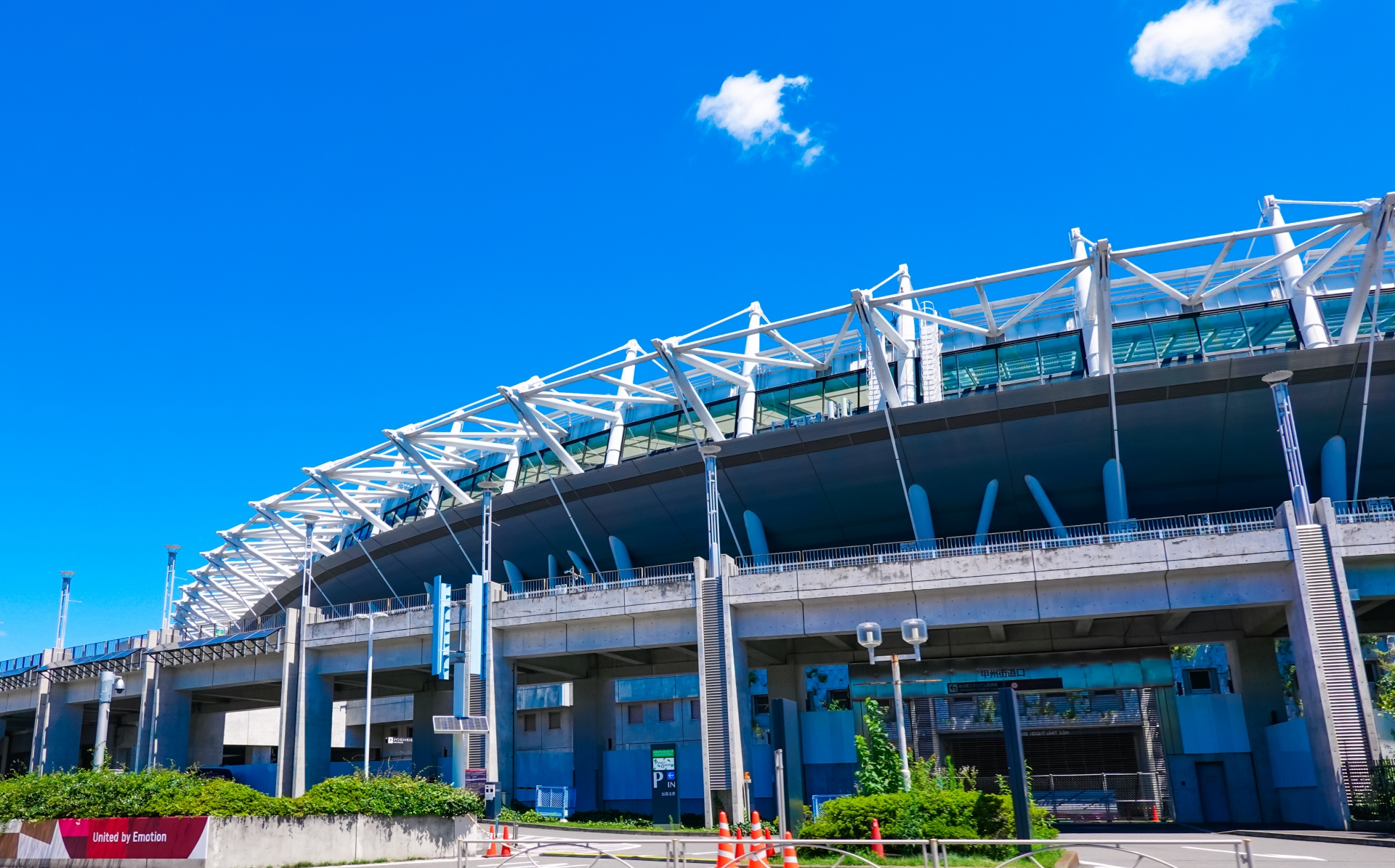 ロケ地は味の素スタジアムのB1エントランスホール。広い屋内空間を活かし、隊列を組んだ訓練や号令の響く緊張感を演出しやすい場所として使われています。
