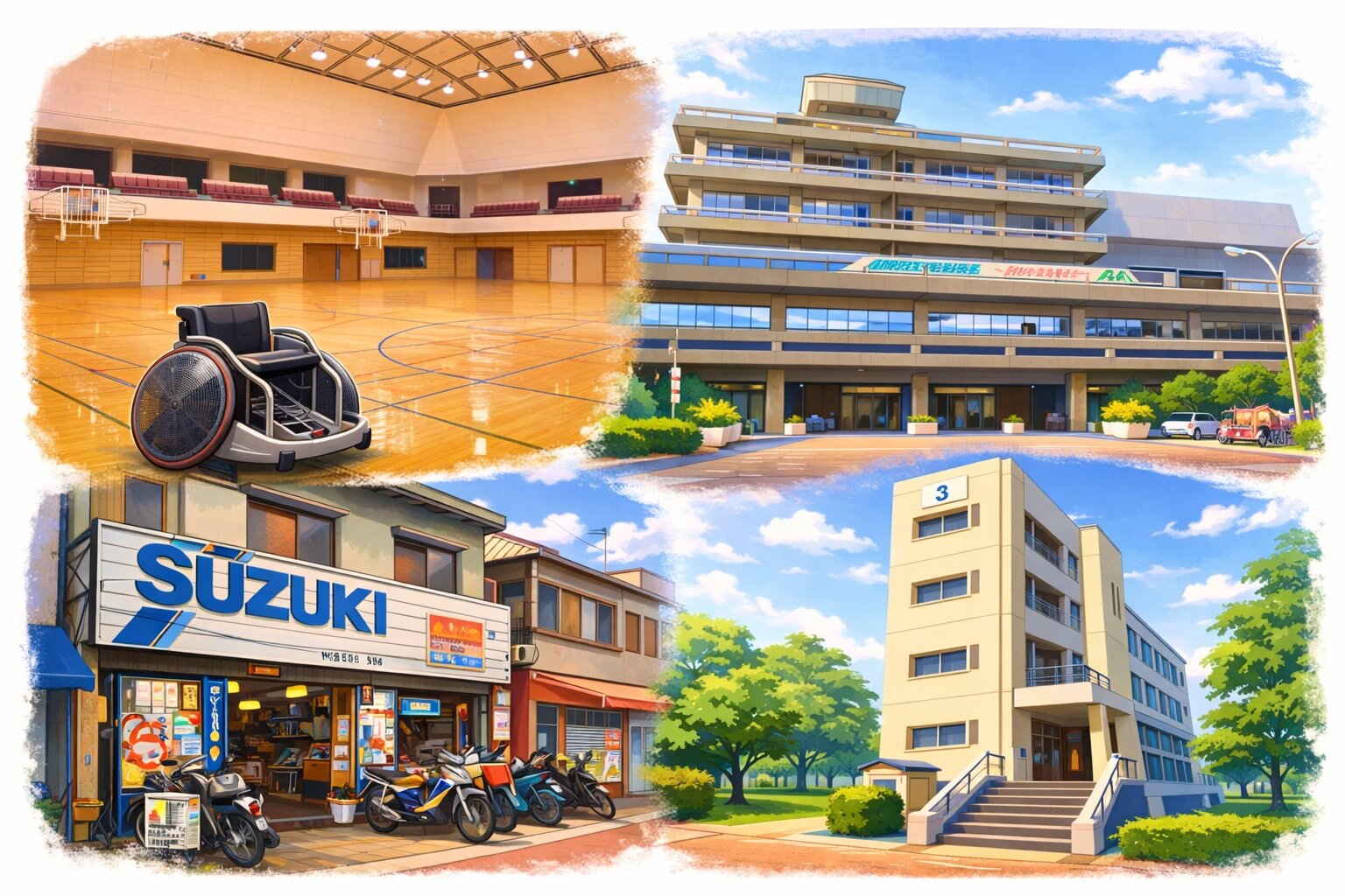 今回は、アリーナ・体育館・朝谷モータース・市役所・出版社オフィス・大学など、印象的な場面で使われた撮影場所を中心に紹介します。