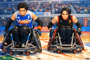 人香が車いすラグビーの競技現場に本格的に触れていく流れの中で使われた場所で、作品序盤に競技の激しさや空気感を伝える重要な場面になっていました。