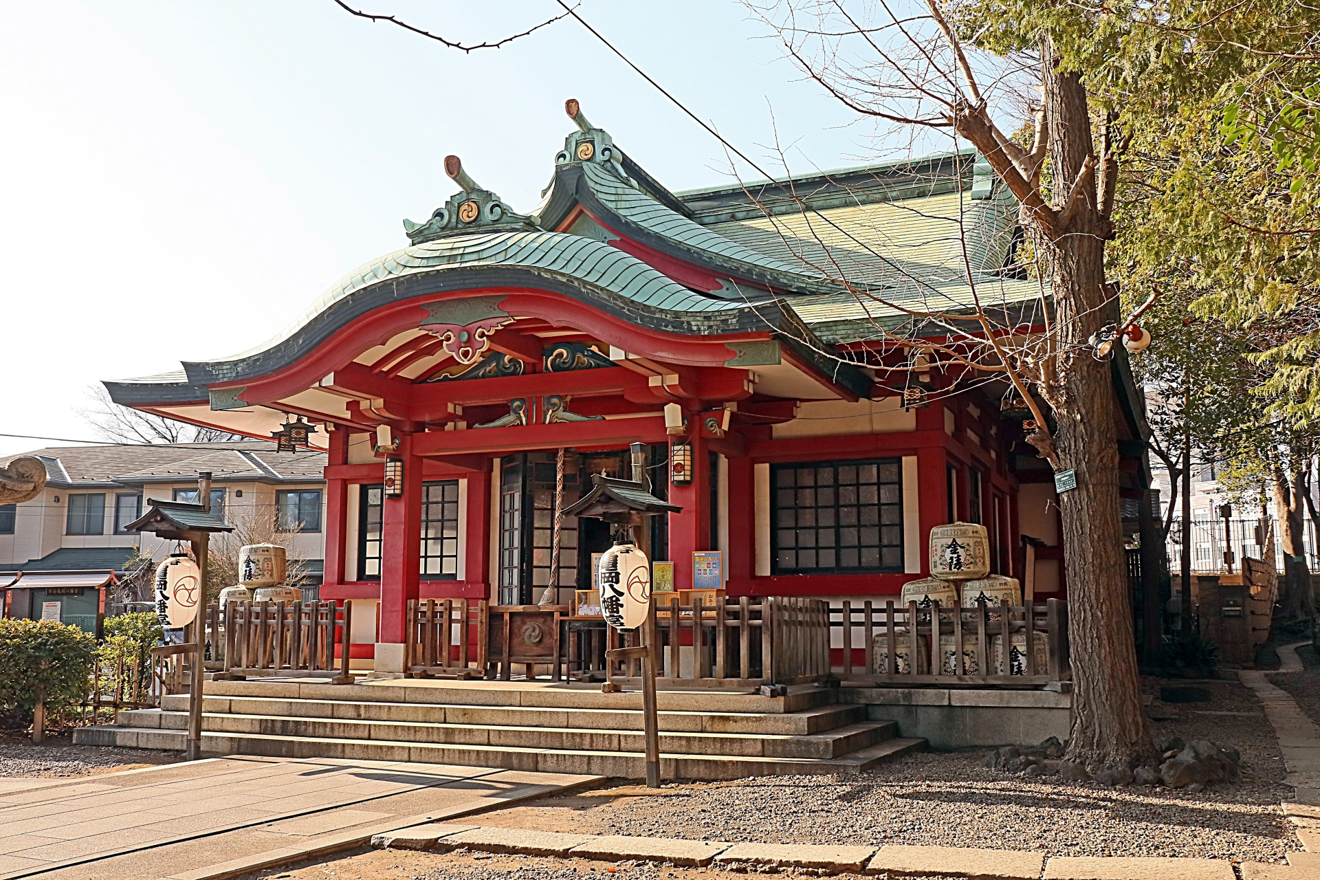 高台に位置しており、境内へ続く石段が印象的で、都心にありながら落ち着いた雰囲気を感じられるのが特徴です。