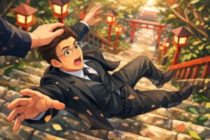 ドラマでは、この階段の存在が場面の緊張感を高めており、静かな神社の空気と突然の出来事との対比が強く印象に残ります。